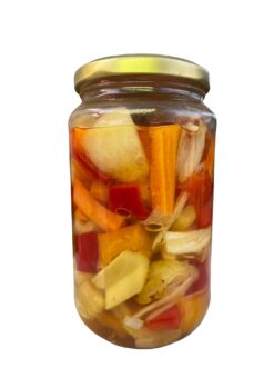 Un grande classico della tradizione, questa giardiniera mista è preparata con verdure selezionate e lavorate artigianalmente per preservarne consistenza, colore e sapore autentico. L’equilibrio raffinato dell’agrodolce valorizza ogni ingrediente, creando un prodotto elegante e versatile, perfetto come antipasto, contorno ricercato o accompagnamento a formaggi stagionati e carni pregiate. Senza conservanti, espressione di qualità, cura e gusto autentico.